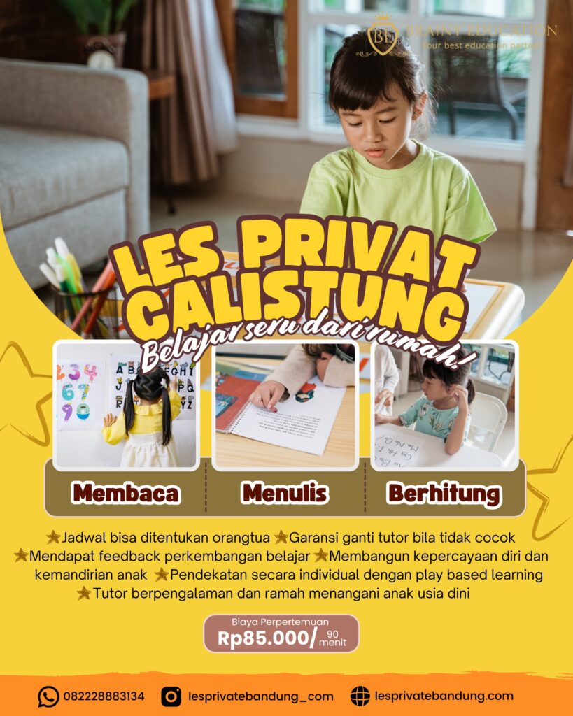 Jika Anda tertarik untuk memberikan pendidikan tambahan yang berkualitas untuk anak Anda, segera hubungi Santi Maya Sari untuk jadwal les privat Calistung atau Bahasa Inggris.